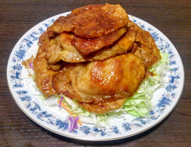 下味1時間アルミ箔ポリ袋密封熱湯内15分放置の厚塊ソテーと双璧を成す。生姜ビンビンじゃなきゃ嫌っ。