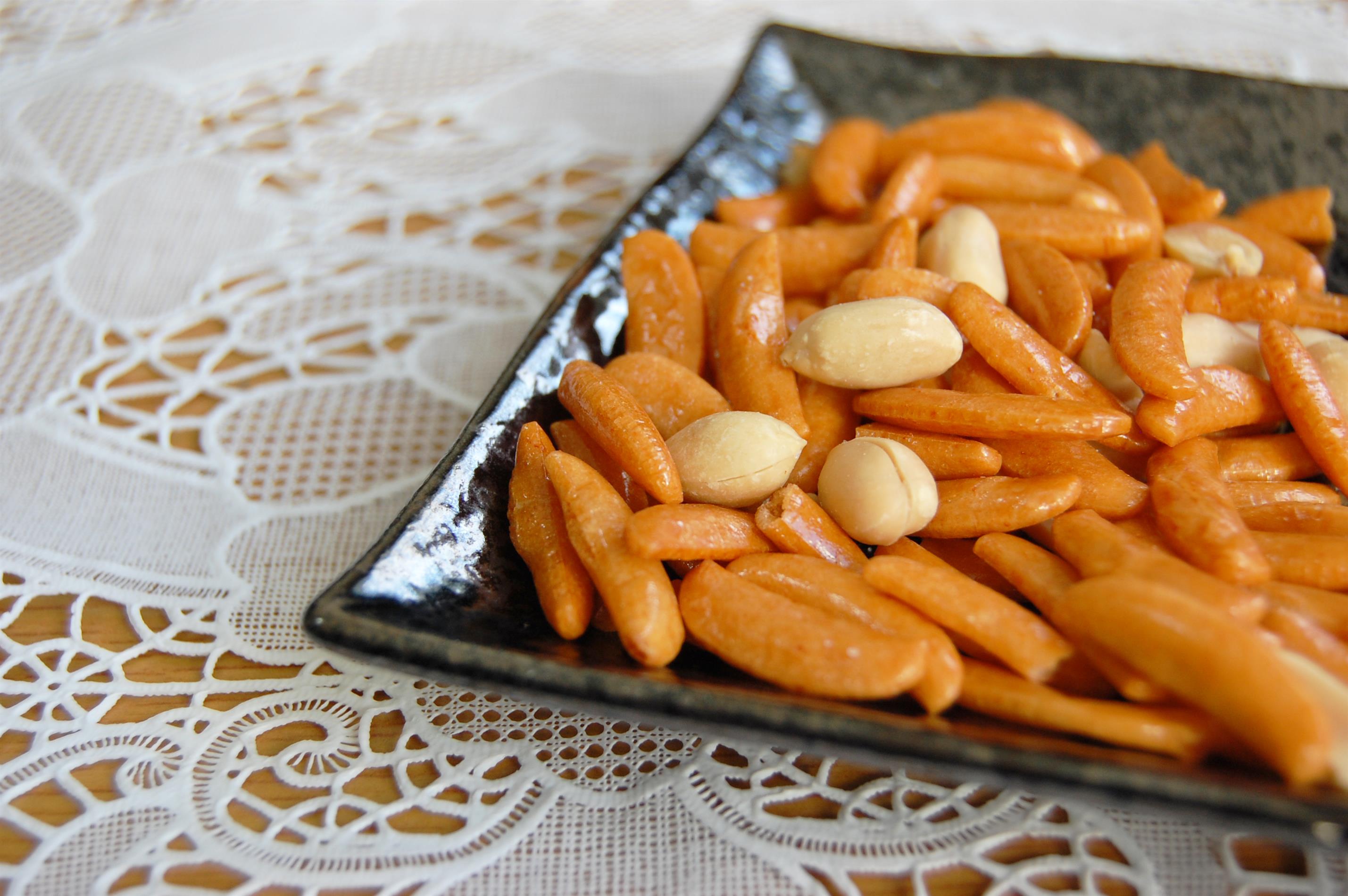 昔は柿の種自体がヒーヒー言うくらい辛かったためピーナッツがあると辛味が和らいだが