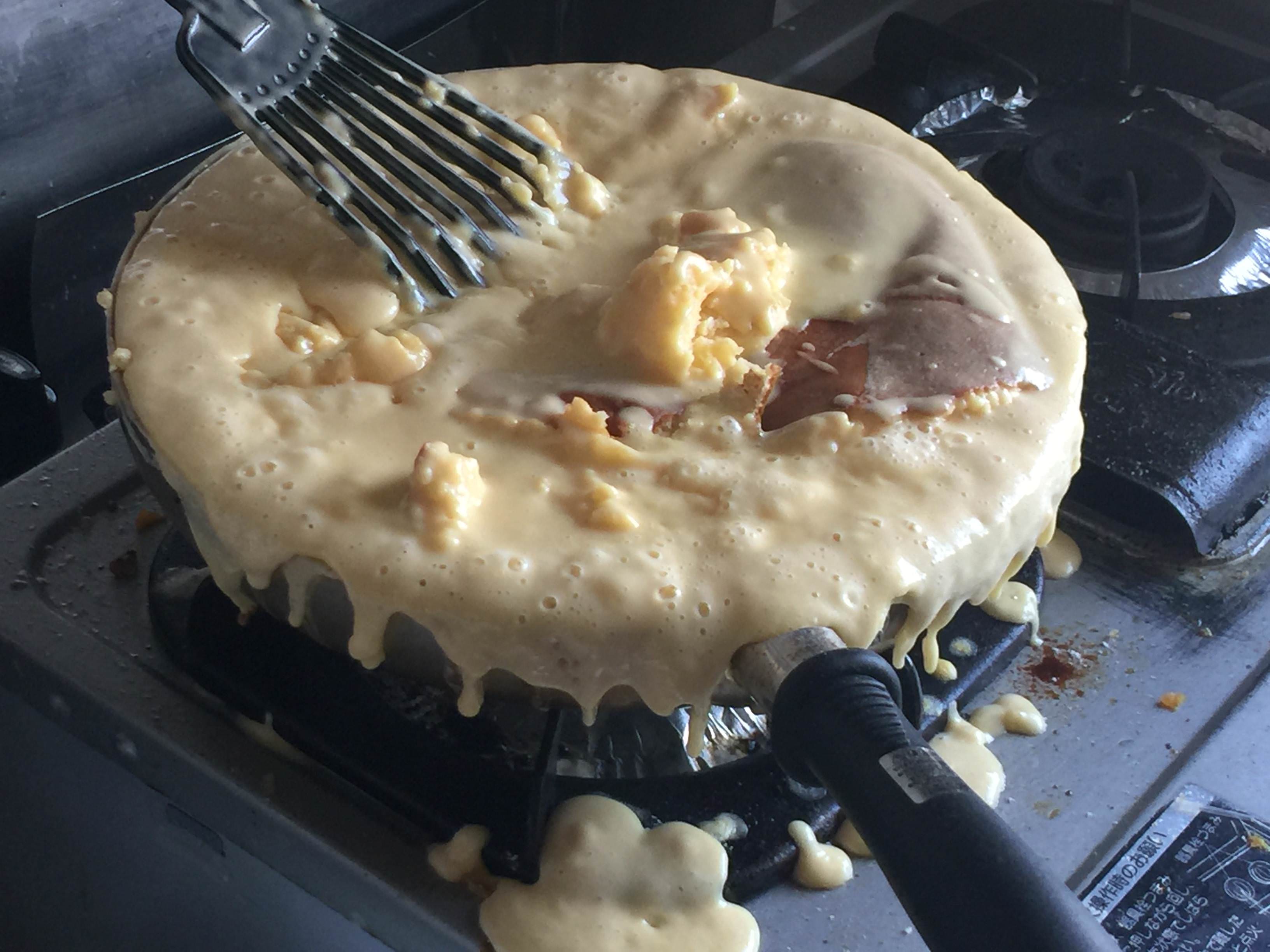 炊飯器で炊飯押したらでかいホットケーキできるよ