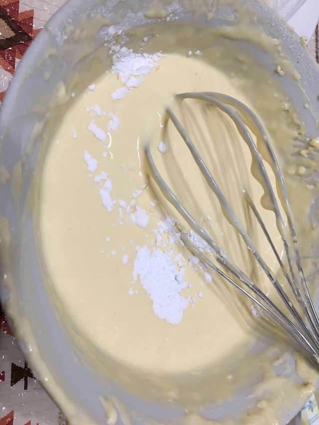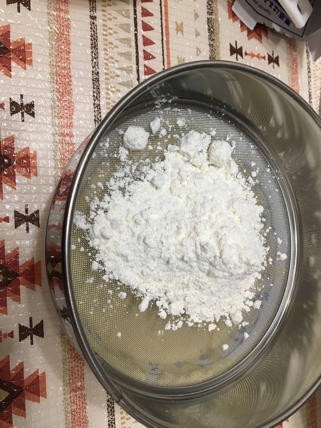 次は小麦粉、コーンスターチ、砂糖を投入や