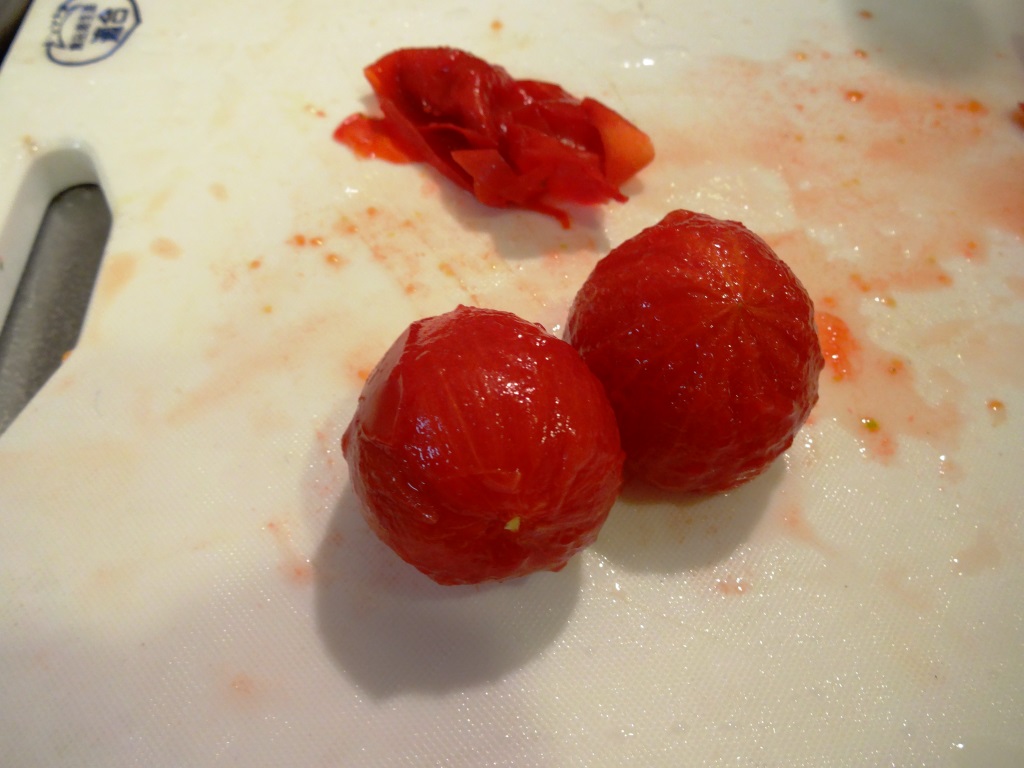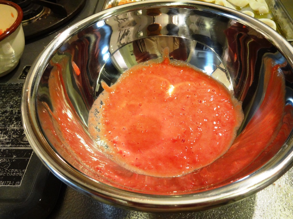 湯剥きしたのとは別に、2~3個ミキサーにかけてソースを作る
