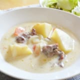 寒くなってきたしホワイトシチュー食べたくなってきたよな。皮付きの鶏肉、ホクホクのじゃがいも、甘いにんじん、溶けかけた玉ねぎ…