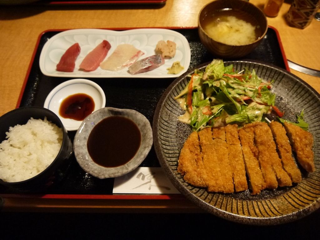 刺身のせいでトンカツまで安っぽく見えるわ