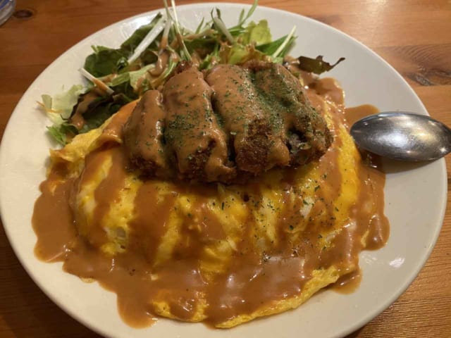 焼きカツ、てかカツの下に卵焼きが乗ってる店も多いね