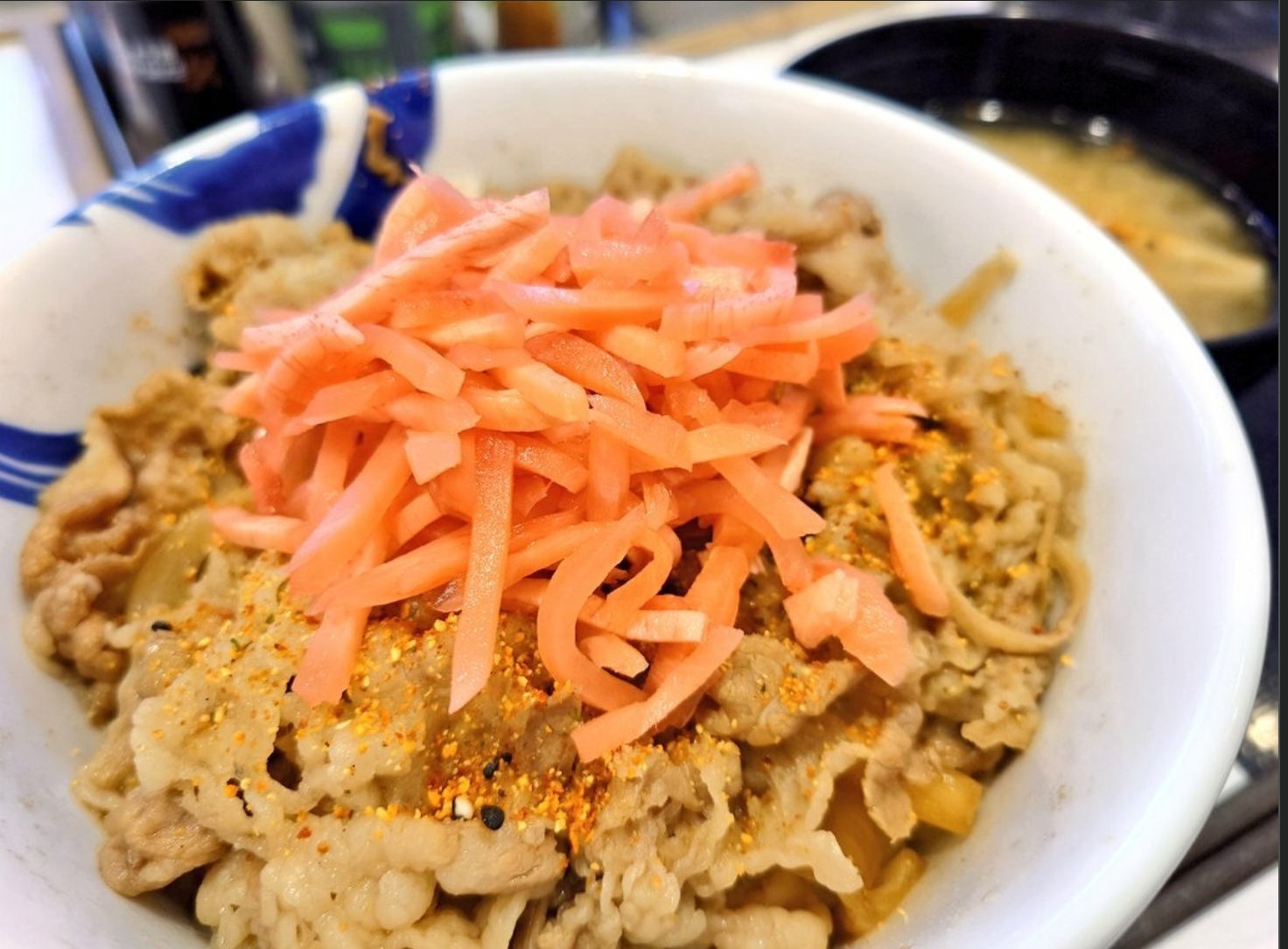 【画像】Z世代、牛丼に大量の紅ショウガを乗せる…