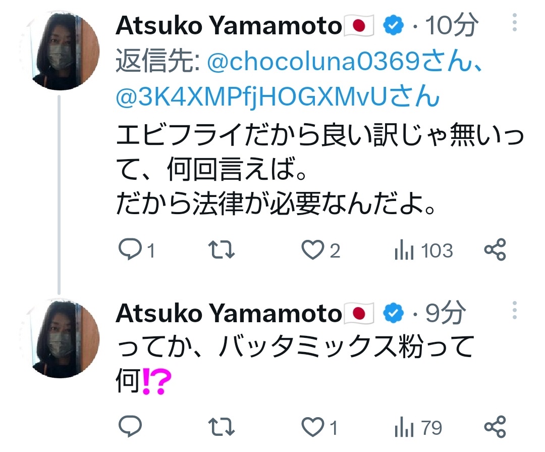 >>85 揚げ物でバッタミックス言われたら普通はバッター液想像してそれを粉末状にしてるの使ってるんやろなって思うからやで 虫のバッタ使ってるんかなって発想にはならんわ 本当にバッタの粉末が入ってるなら嫌やから真相は知りたいで