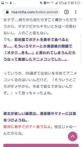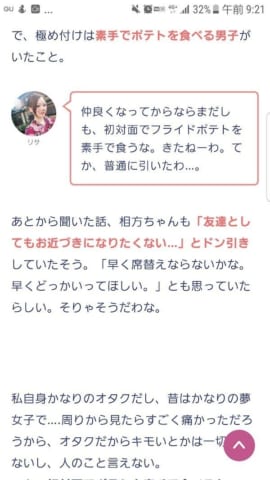 婚活女「アニメオタクはフライドポテト食うなよキショい」