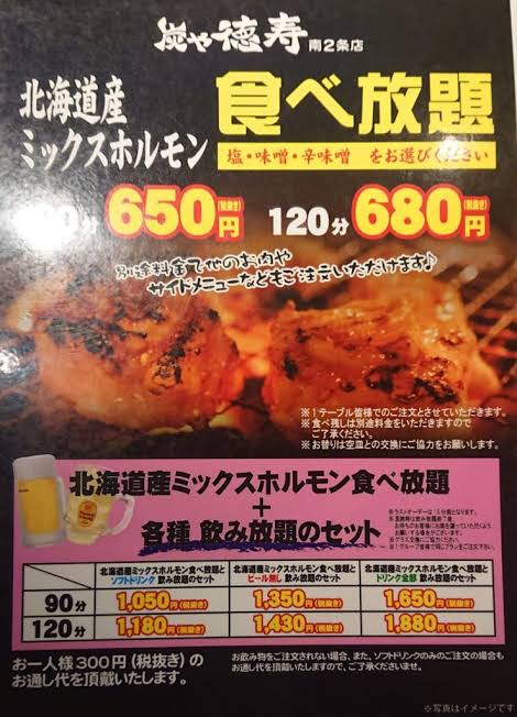 多分これホルモン90分飲み放題120分にして残りの30分適当なもんで繋ぐのがコスパ一番ええんやろな