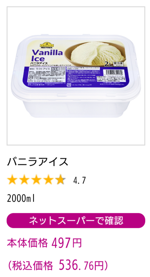 他もおいしいけどコスパ良いのはバニラ2Lだけなんだよね他は1Lだし