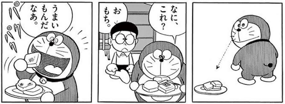 始めてドラえもんが来たときに最初に食ったんが餅やぞ