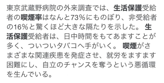 たばこの売上を維持するため、政府・行政が意図的に喫煙者を生活保護受給者に認定している疑いが出て来た