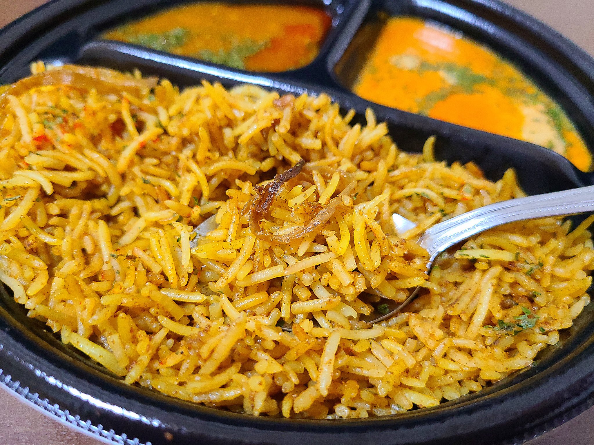 このビリヤニなんと上げ底もない容器いっぱいに米とカレーが詰まってます