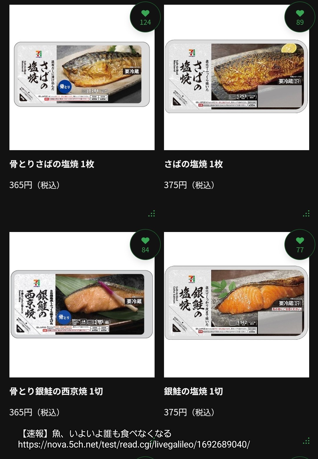 全部肉程度の値段だよ魚介類だけで2食分100〜200円くらい