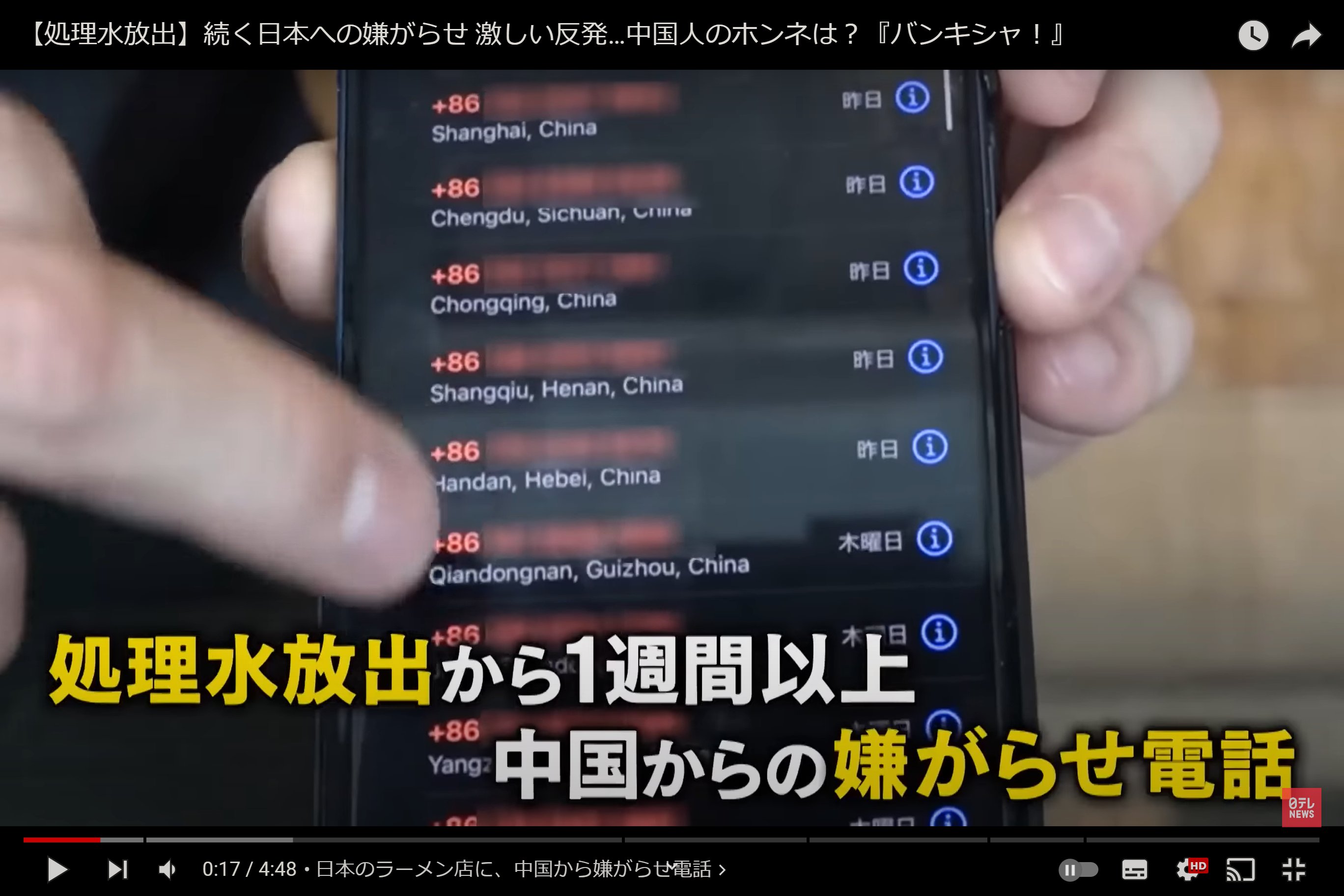 日本「なぜ無関係の人に嫌がらせ電話する?」中国人「日本国民、全員同意したから放水したんだろ」