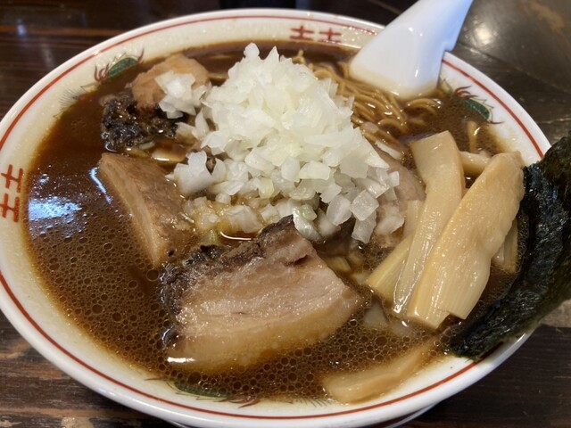 竹岡とはちゃうけど玉ねぎのってる醤油スープのうまいのあるよ 船橋近くのこまつやって店や おすすめや