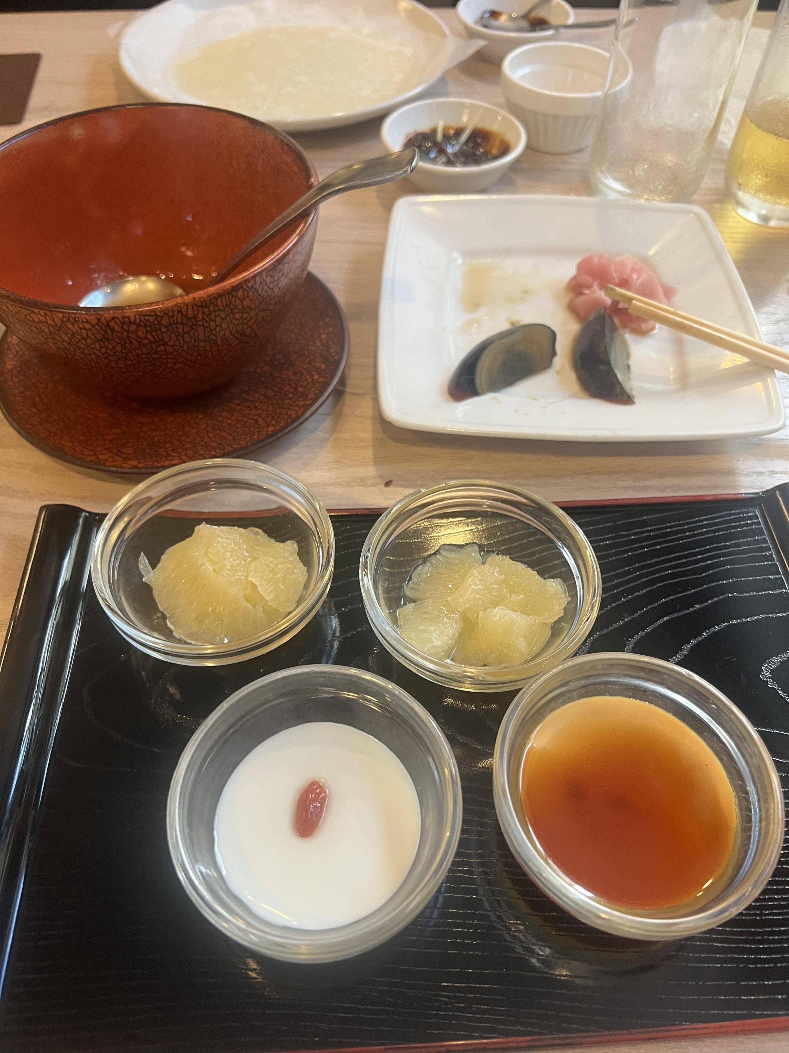 北京ダックとかどう見てもグミみたいなスケスケの奴が出てきたw