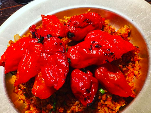 激辛メニュー『デビルチャーハン』は、大量の唐辛子パウダーに加え、過去にギネス記録に認定された激辛唐辛子『ブートジョロキア』の実が12個もトッピングされています。