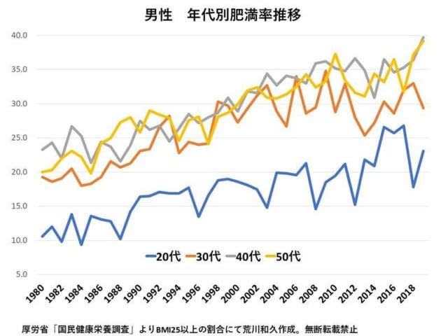 ネットが普及し始めた2000年くらいからシャレにならん肥満が増加しとる