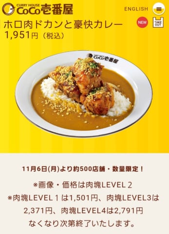 【画像】ココイチの肉塊カレーwwwww