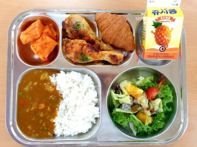 韓国の給食でデザーとかジュースとかスナック菓子とか付いてる写真は