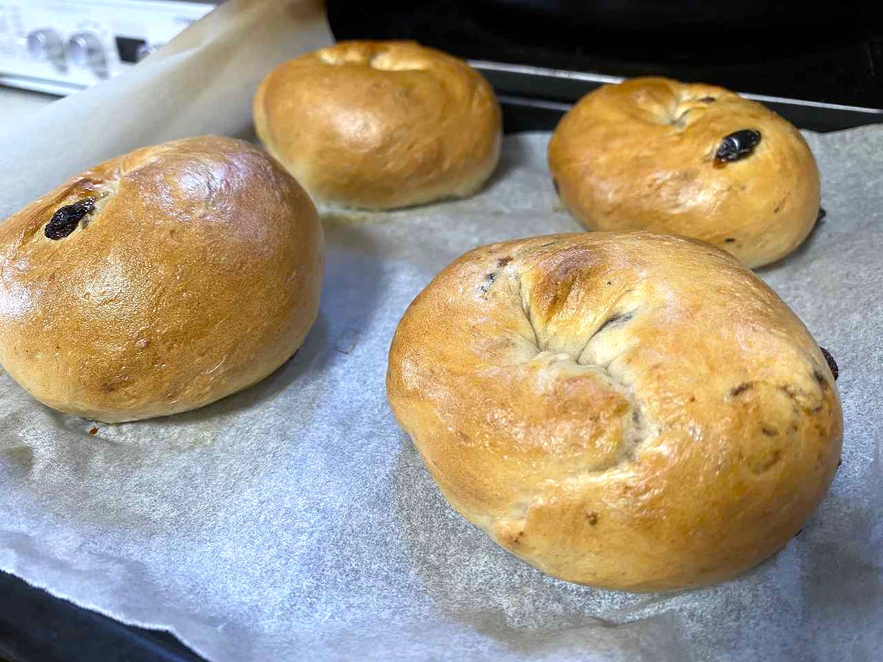 粉混ぜます、1次発酵します、切り分けます、ベンチタイム置きます、整形します、2次発酵します、焼成します