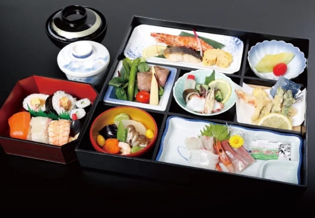 仕出しに加えて、目の前で天ぷら揚げたり、寿司握ってくれたりする