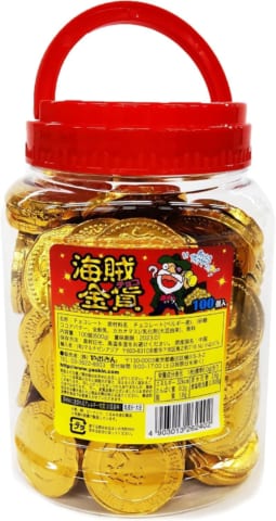 今五円チョコ10円なのビビった やおきんポットイリ海賊金貨チョコ100枚(600g)