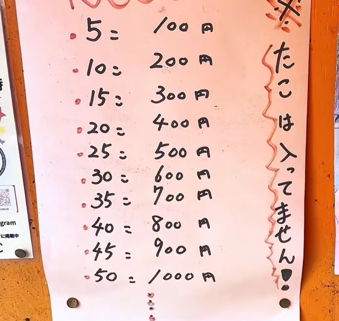 天才タコ焼き屋ワイ「たこが入っている確率は半分なのでお友達とくじ引き感覚でお楽しみいただけます!」