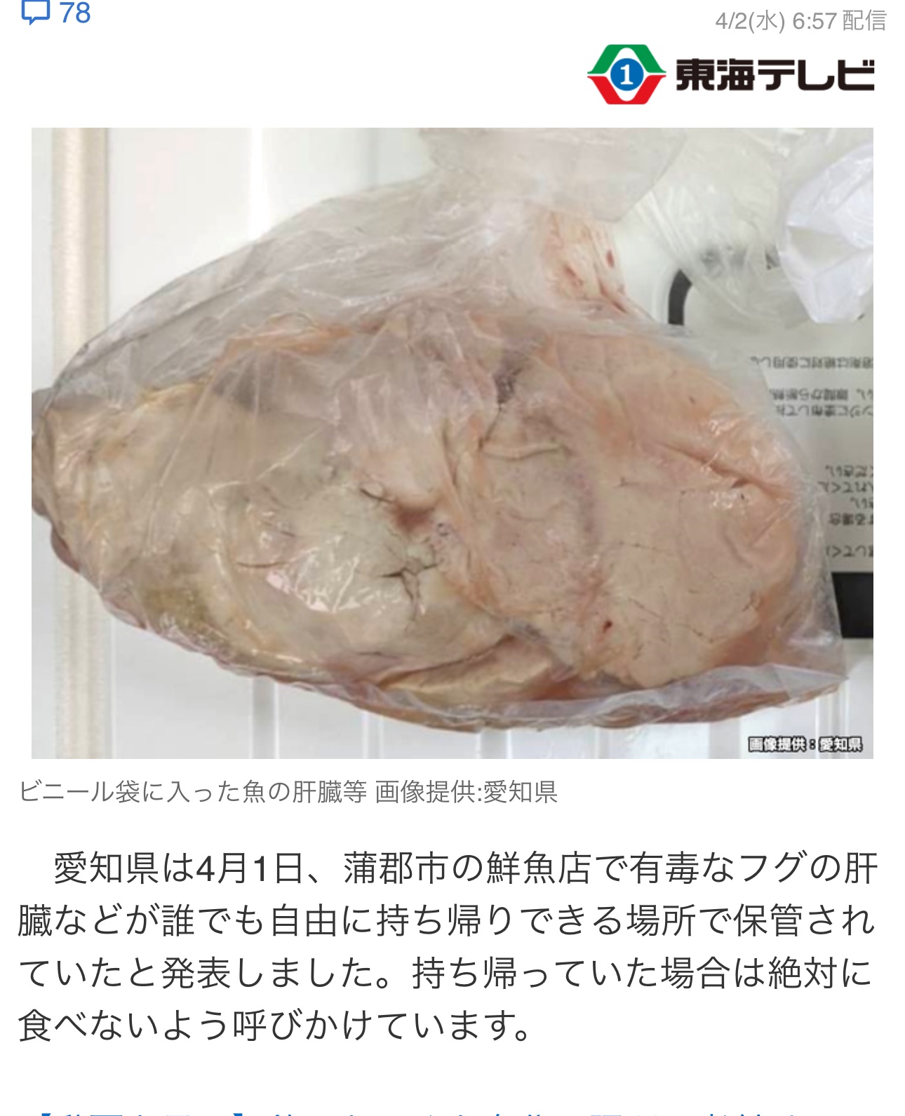 フグの内臓って鍵付きの箱に入れて管理しないとダメなんじゃなかったっけ
