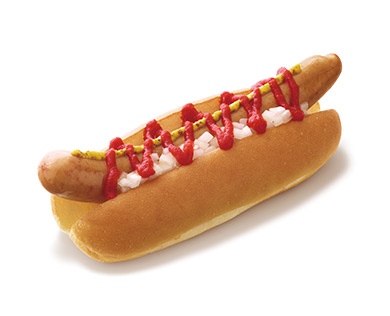 ホットドッグ用パンと好みのウインナー・トマトケチャップ・粒マスタードと時々レタスを用意して自作する方が満足度高いし