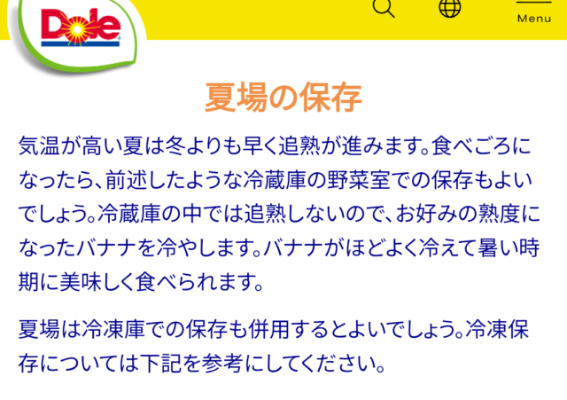 このDoleの元記事だって夏場は冷蔵庫の野菜室や冷凍庫での保存も推奨してる