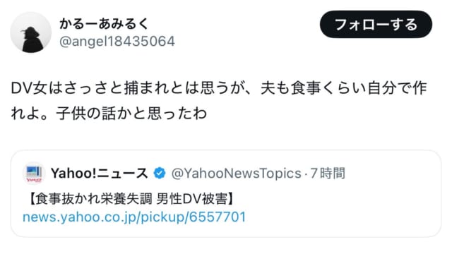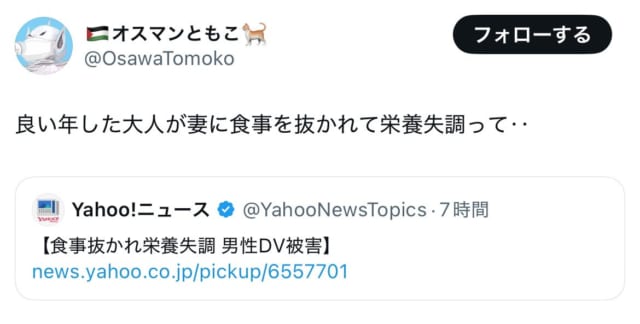『嫁による財布取り上げと食料制限のDVで夫が栄養失調』だろ