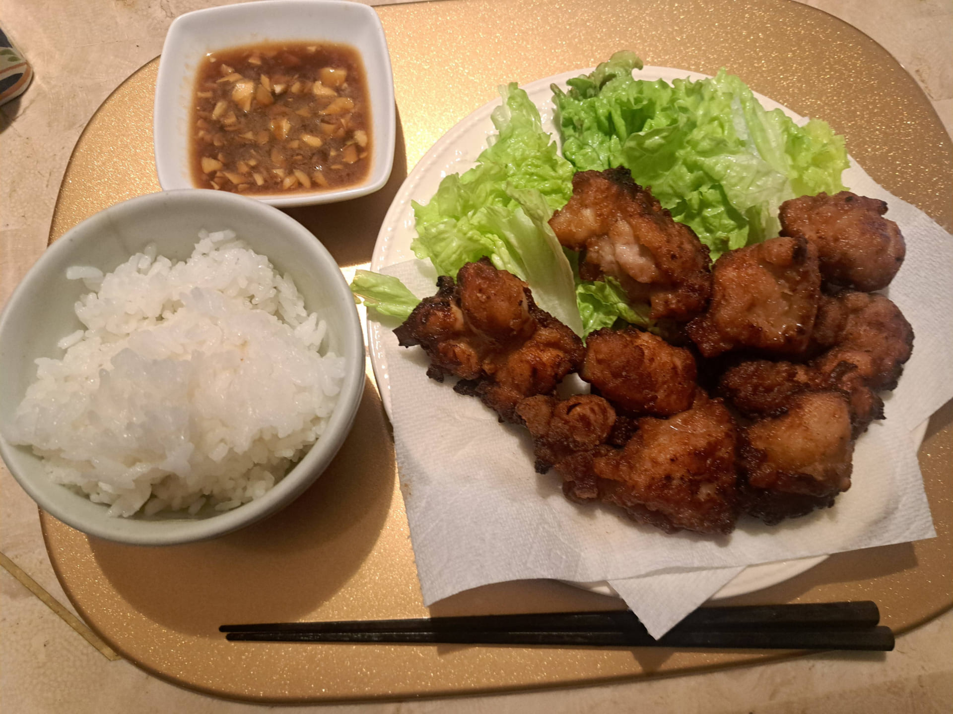 ワイアラフォーはオカンの作った唐揚げ食べてる
