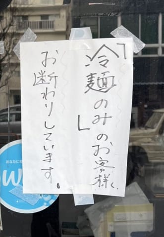 盛楼閣とかそのレベルじゃないと冷麺オンリーは嫌な顔されるよ