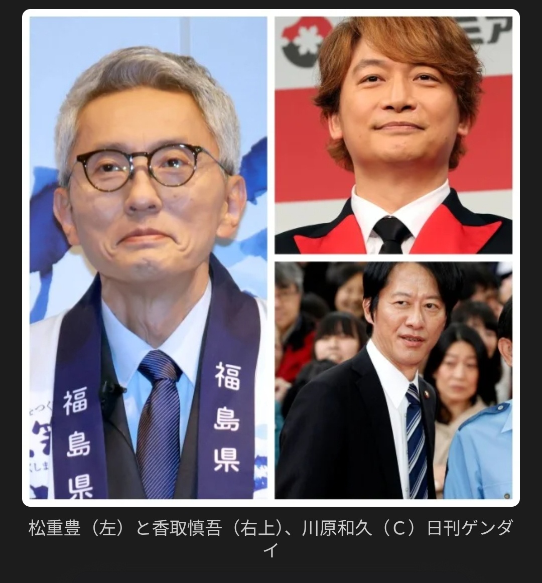 >まず、名前が挙がることが多いのは、香取慎吾さん(49)と川原和久さん(64)です。
